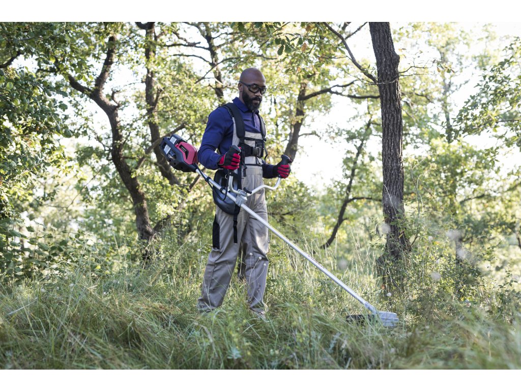 Tento lehký křovinořez s ovládacími řidítky je vynikající pomocník při likvidaci přerostlých travin, náletů a menších křovin hlavně ve svažitém terénu nebo mírně rozlehlých plochách hlavně v oblastech, které jsou velmi citlivé na hlučnost nebo kde je vyloučeno použití spalovacích motorů. Při práci je stroj zavěšen na bezpečnostní karabině dvouramenního zádového postroje a při dokonalém vyvážení dle postavy uživatele je jeho ovládání pomocí obouručných řidítek velice snadnou záležitostí. Díky ovládacím řidítkům je držení křovinořezu při práci velmi stabilní, bezpečné a jednoduché a stroj je vhodný i pro použití s ocelovým travním kotoučem. Nylonová struna namotaná na cívce poloautomatické strunové hlavy typu "Tap & Go" se v případě potřeby automaticky odmotá pouhým poklepem strunovou hlavou o zem. Spolehlivý systém tak umožní pracovat bez přerušení a včas dokončit svoji práci. Dokonalá ochrana před odlétávající trávou je zajištěna díky rozměrnému a robustnímu bezpečnostnímu krytu. Akumulátory 36 V v provedení buď 4 Ah, 6 Ah nebo 9 Ah Vám poskytnou dostatek výkonu a času pro dokončovací práce při likvidaci travního porostu kolem zídek, plotů, stromů, keřů a jiných překážek. Sousedé Vás při práci ani neuslyší a Vy díky nízké hmotnosti a dokonalému vyvážení stroje ani nepocítíte únavu.
