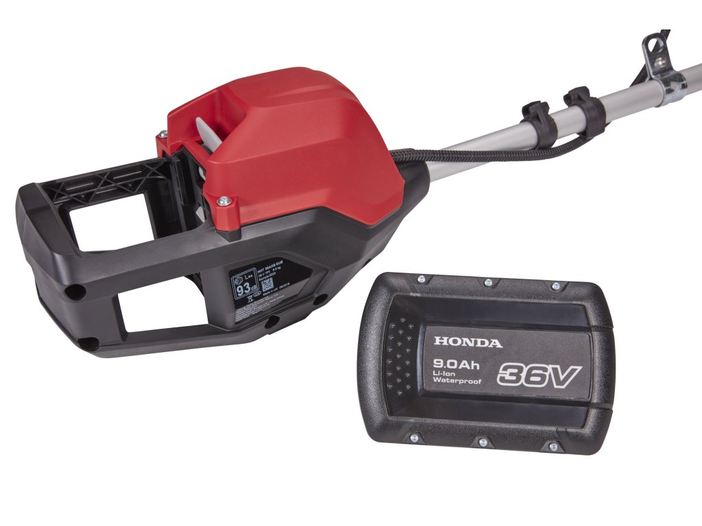 Honda HHT 36 AXB: „Vysoký výkon, odolnost vůči zátěži, snadná manipulace a dokonalá vyváženost dokáže efektivně a bez hluku a zápachu začistit trávník i v méně přístupných místech nebo posekat i nálety na větších plochách. První AKU křovinořez od Hondy se silným bezuhlíkovým elektromotorem, dvojitým zádovým postrojem s bezpečnostní karabinou, poloautomatickou žací strunovou hlavou typu Tap & Go a 3 zubým žacím kotoučem o průměru 255 mm v základním vybevení.
