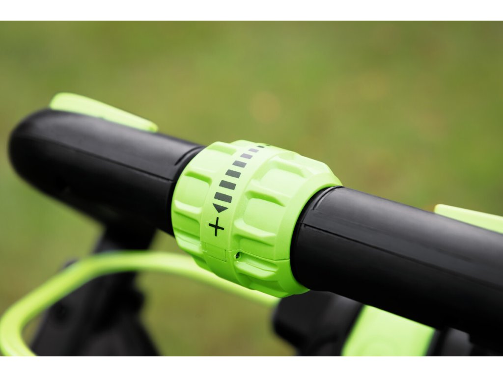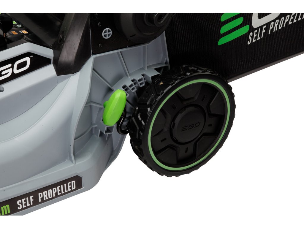 Model EGO LM 1903E-SP - záběr sečení 47cm a plynule proměnlivý pojezd, objem sběrného koše 55L, teleskopická a výškově nastavitelná komfortní rukojeť.