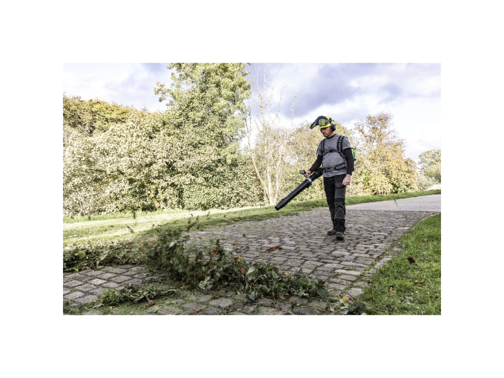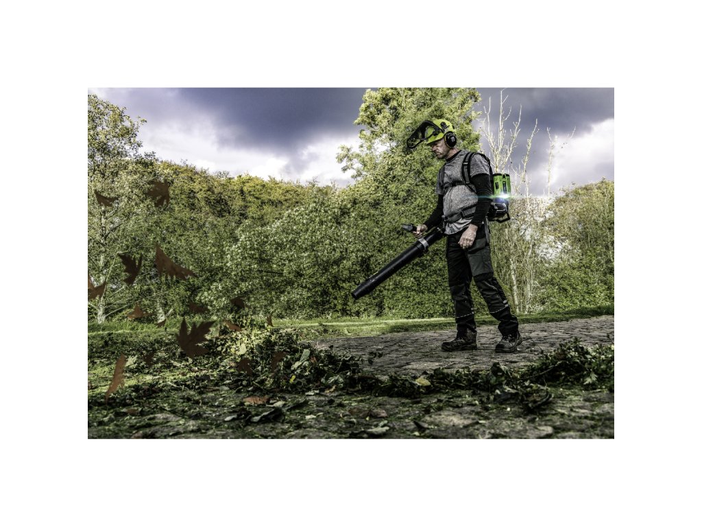 Profesionální úklid povrchů vyžaduje výkonný a spolehlivý stroj. Uklizený trávník na podzim v zámeckých zahradách, parcích nebo na zahradách většinou zakryje vrstva spadaného listí z okolních stromů. Nebo čisté chodníky ve městech, areálech nemocnic, škol a dalších institucí citlivých na hlučnost zbavené zbytky posečené trávy a jiných nečistot. To je práce přesně pro tento zádový fukar. Zádový AKU fukar díky výkonnému dmychadlu a zvýšenému režimu "BOOST" vyfukuje vzduch rychlostí až 305km/h. Dokonce je schopen spolehlivě "odfouknout" i vrstvu lehkého, čerstvě padlého sněhu z chodníků či parkovišť. Pro snadnou manipulaci je celý stroj dokonale ergonomicky vyvážen. Má podstatně nižší vibrace v porovnání s benzínovými foukači a mnohem tišší chod. Pohodlný, ergonomický a polstrovaný zádový postroj rovnoměrně rozloží zatížení stroje na bedrech uživatele, což činí z foukače ideální stroj pro opravdu nejnáročnější využití. Velkokapacitní výfukový tubus s možností použití ploché trysky obluha snadno nasměruje přesně do místa. Ovládací rukojeť je na tubusu letmo uložena tak, že se přizpůsobí každé postavě uživatele a je opatřena bezpečnostní pojistkou, která zaručuje v případě uvolnění okamžité vypnutí stroje. Na rukojeti je umístněn vypínač, který zajišťuje při stisknutí plynulé a postupné spuštění stroje a fixátorem pro aretaci aktuálně nastavené rychlosti. V horní části rukojeti je v dosahu prstu umístěno tlačítko "BOOST" a je zde umístěn dobře čitelný diplej s ukazatelem stavu baterií a dalšími provozními údaji. Díky příjemné ovládácí rukojeti potažené měkčenou gumou, je držení a ovládání fukaru při práci velmi stabilní, bezpečné a pohodlné i v chladném počasí. Inteligentní technologie "PEAK POWER" se dokonale stará o vyvážený odběr energie ze dvou napájecích baterií, i v případě že je každá jiné kapacity. Na pohon fukaru lze použít jakoukoliv systémovou baterii ze sortimentu EGO a např. dvě baterie 10,0Ah vám umožní pracovat nepřetržitě od 40 min v režimu "BOST" až do 200 minut v nízkém režimu. Naše lithiové baterie EGO Power+ 56V Arc Vám poskytnou dostatek energie pro pohon dostatečně výkonného a účinného bezuhlíkového elektromotoru s přímým náhonem na vysokorychlostní dmychadlo.