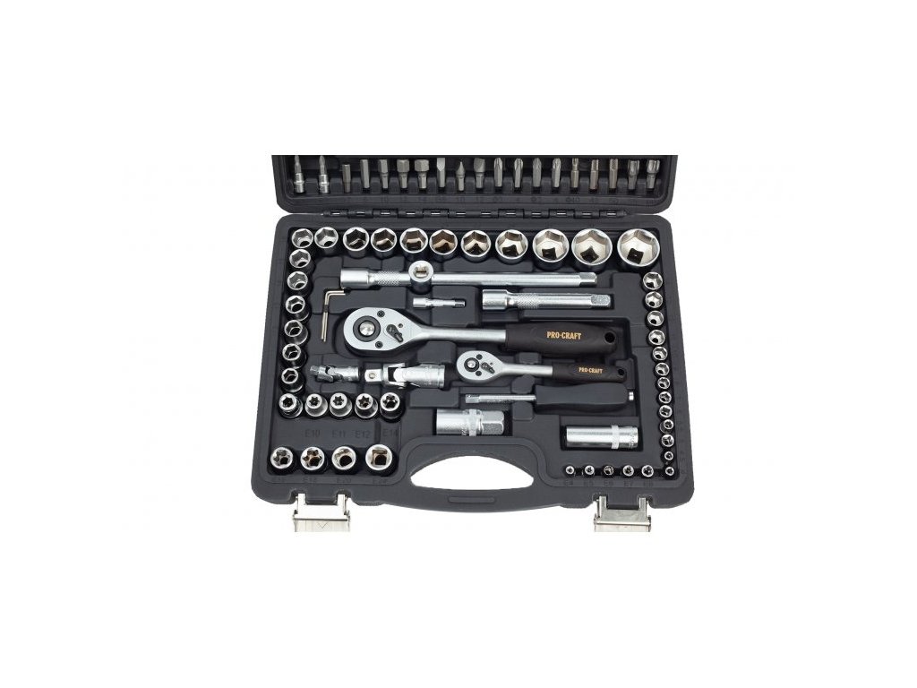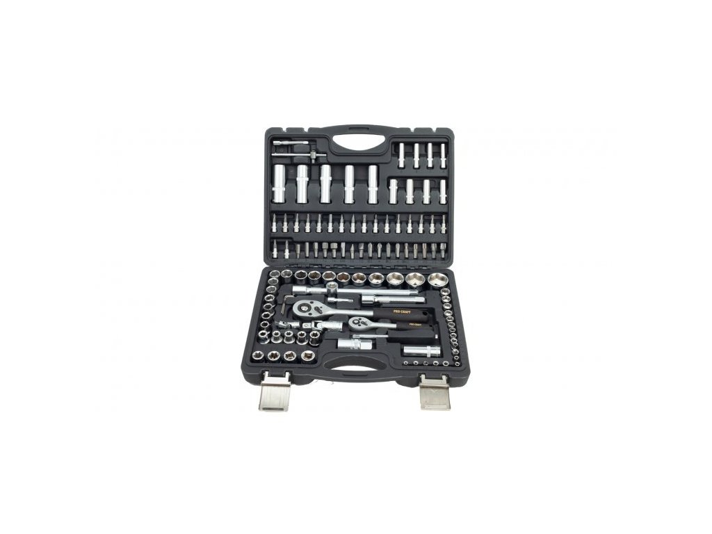 Gola sada Procraft WS-108 108 dílů je určena k použití v domácí dílně, ale i pro mechaniky. Hlavice a ráčny jsou vyrobeny z kvalitné chrom-vanadiové oceli (CRV) chrání proti korozí a tvrdý povrch produžuje životnost. Ráčny mají 48 zubů v rohatkovém převodu a jsou vybaveny páčkou. Odolný plastový kufr s kovovým zavíráním usnadňuje dlouhodobé použití a přenášení. Přehledně roztříděné nářadí usnadňují a zrychlují práci. Sada obsahuje ráčny, bity, nástrčné hlavice, šestihranné klíče, vratidla, univerzální klouby, prodlužovací nástavce a šroubovák pro nástrčné bity. Součástí dodávky je plastový kufr.