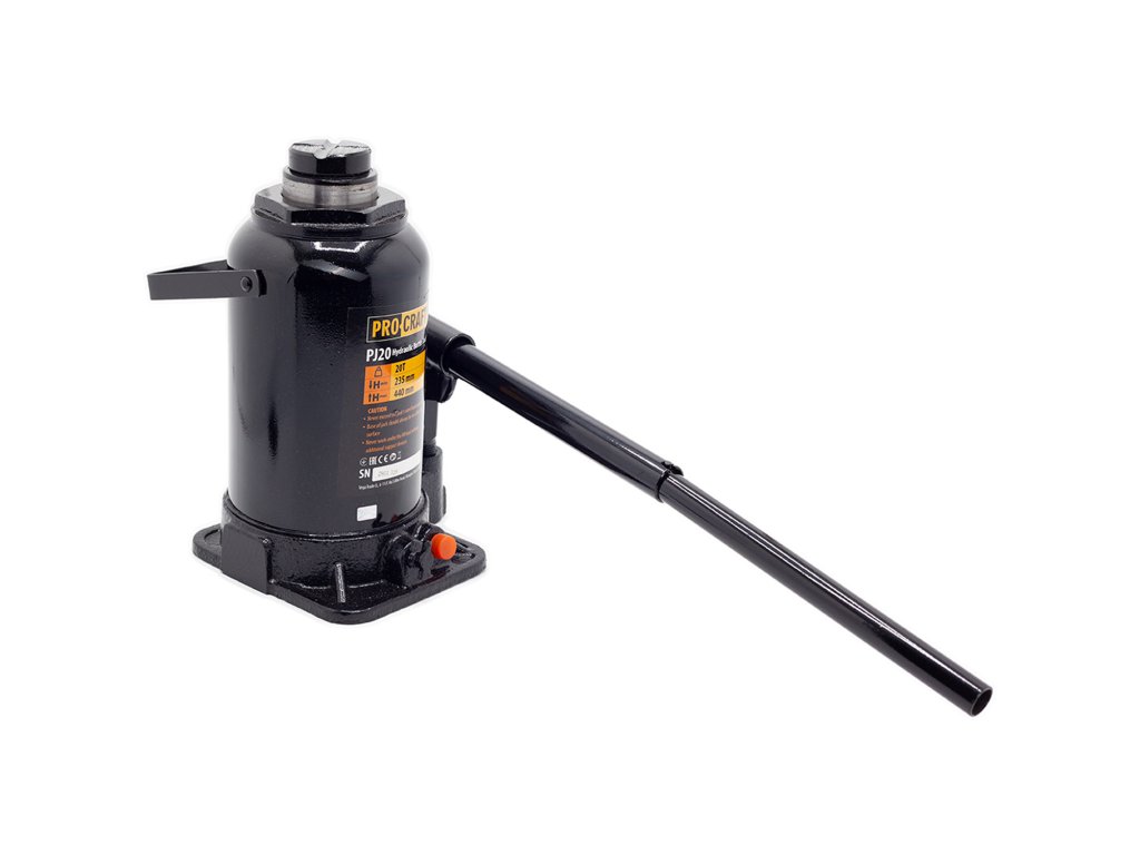 Hydraulický zvedák Procraft PJ20 je určen k zdvihání automobilů, ve stavebnictví a průmyslu. Konstrukce je z kvalitní litiny, vybavena bezpečnostním ventilem. Zvedák má zdvihací kapacitu 20 tun a zdvihový rozsah od 235 mm do 440 mm a vybaven šroubovací patkou. Pohodlné zdvihání a plynulé spouštění břemen usnadňují práci. Součástí dodávky je tyč. Balení karton.