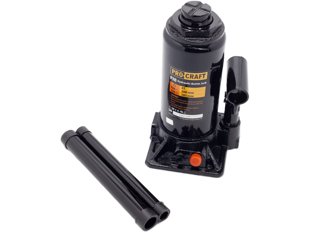 Hydraulický zvedák Procraft PJ8 je určen k zdvihání automobilů, ve stavebnictví a průmyslu. Konstrukce je z kvalitní litiny, vybavena bezpečnostním ventilem. Zvedák má zdvihací kapacitu 8 tun a zdvihový rozsah od 200 mm do 385 mm a vybaven šroubovací patkou. Pohodlné zdvihání a plynulé spouštění břemen usnadňují práci. Součástí dodávky je tyč. Balení karton.
