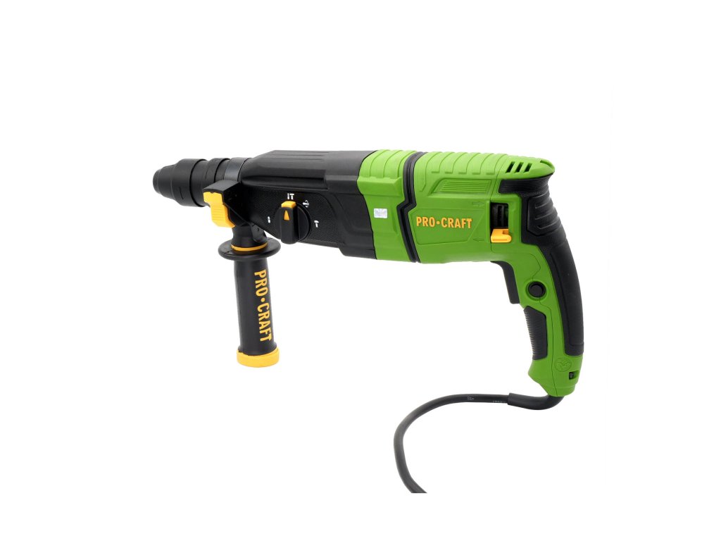 Kombinované kladivo Procraft BH1100 DFR je určeno k práci se stavebními materiály jako jsou cihly, beton nebo kámen. Tři přepínatelné funkce zajišťují všestranné využití kladiva: vrtání s příklepem, sekací funkce. Regulace otáček umožňuje nastavení optimálních parametrů při práci s různými materiály. Díky konstrukci může být použito pro domácí a poloprofesionální potřeby. Pravý a levý chod zajišťuje snadné uvolnění zaseknutého vrtáků. Jako příslušenství lze použít SDS Plus příklepové vrtáky do betonu, ploché - špičaté nebo tvarované sekáče na stavební materiály, hadovité (spitálové) vrtáky a dláta do dřeva. Součástí dodávky je plochý a špičatý sekáč, tři vrtáky a přepravní kufr. Balení karton.