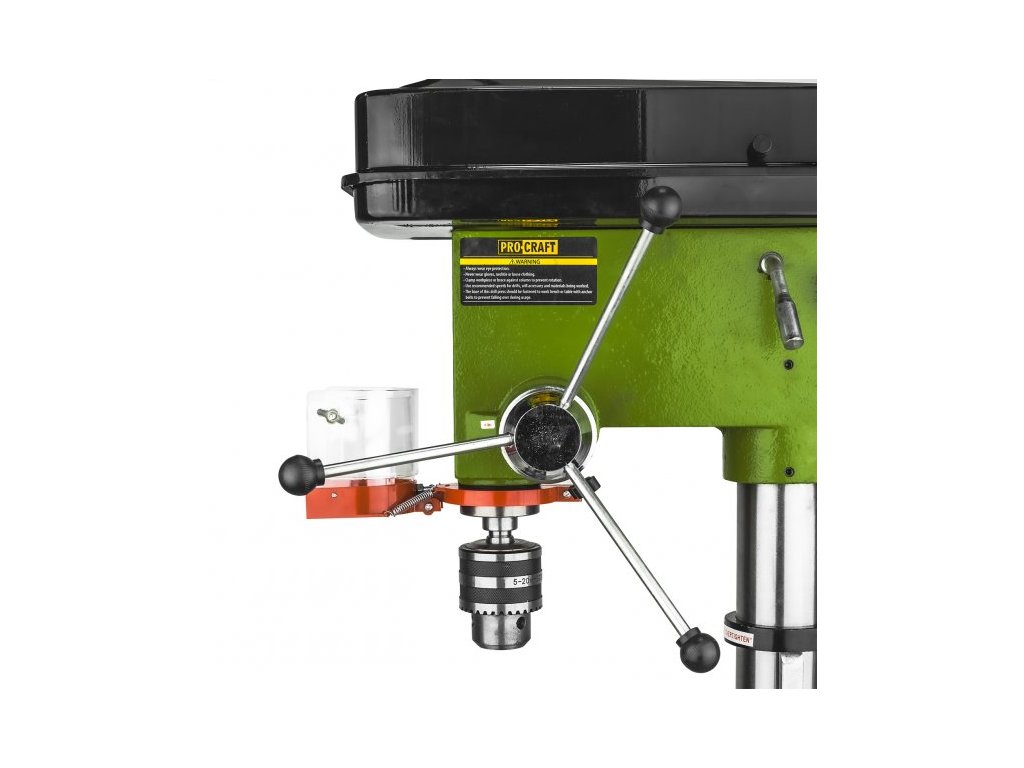 Sloupová vrtačka Procraft BD2150 je určena k vrtání do dřeva, kovu nebo plastů. Regulace otáček v 16 rychlostních stupních vrtání umožňuje nastavení optimálních parametrů při práci s různými materiály. Silný motor s výkonem 750 W a vysokých otáček až 3320 zaručuje dlouhou bezporuchovou práci. Ozubené sklíčidlo umožňuje upnutí vrtáků a stopkových nástrojů do průměru 20 mm. Možnost natáčení pracovního stolu až o 360° a naklápění do úhlu ±45°. Balení karton.