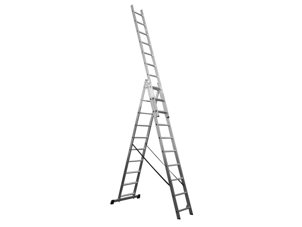 Žebřík hliníkový třídílný Procraft pro všestranné použití z odolného a lehkého hliníku. Vybaven speciálními protiskluzovými nožičky, které zajišťují nejvyšší bezpečnostní standard. Žebřík odpovídá evropským normám bezpečnosti, jsou schváleny a certifikovány dle EN131. Robustní a kvalitní konstrukce s vysokým madlem.