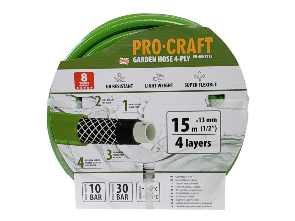 Zahradní hadice Procraft PR-4GH1315 je zkrátka spolehlivým a odolným pomocníkem pro každého zahrádkáře, který ocení dlouhou životnost a bezstarostné používání